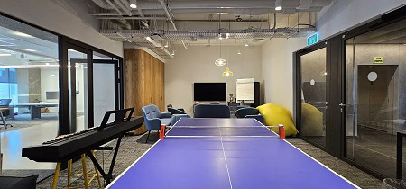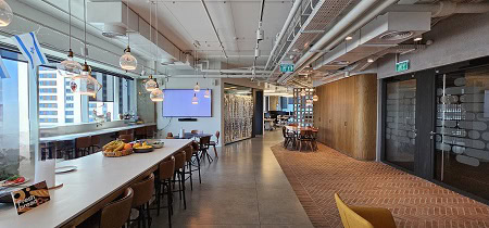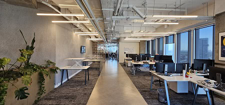 אודות חלוקת המשרד: המשרד מחולק לאופן ספייס גדול 112 עמדות עבודה, חדרי עבודה, חדרי ישיבות קטנים וגדולים,תאי טלפון, מטבחון עם לאונג’.