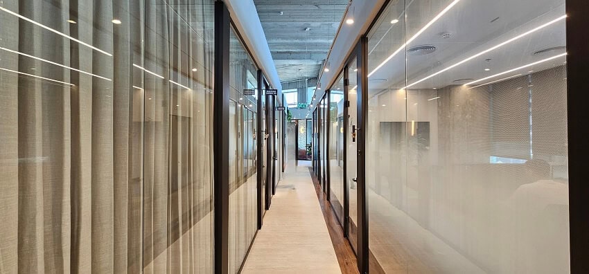 אודות חלוקת המשרד: אופן ספייס שיכול להתאים ל19 עמדות עבודה,חדר ישיבות צמוד וחדרים נוספים לשטחים ציבוריים לשימוש משותף.