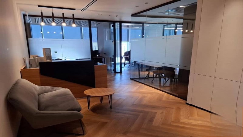 אודות חלוקת המשרד: חדר מנכ”ל מרווח, קבלה, חדר ישיבות, 3 חדרי עבודה נוספים, ומטבחון.
