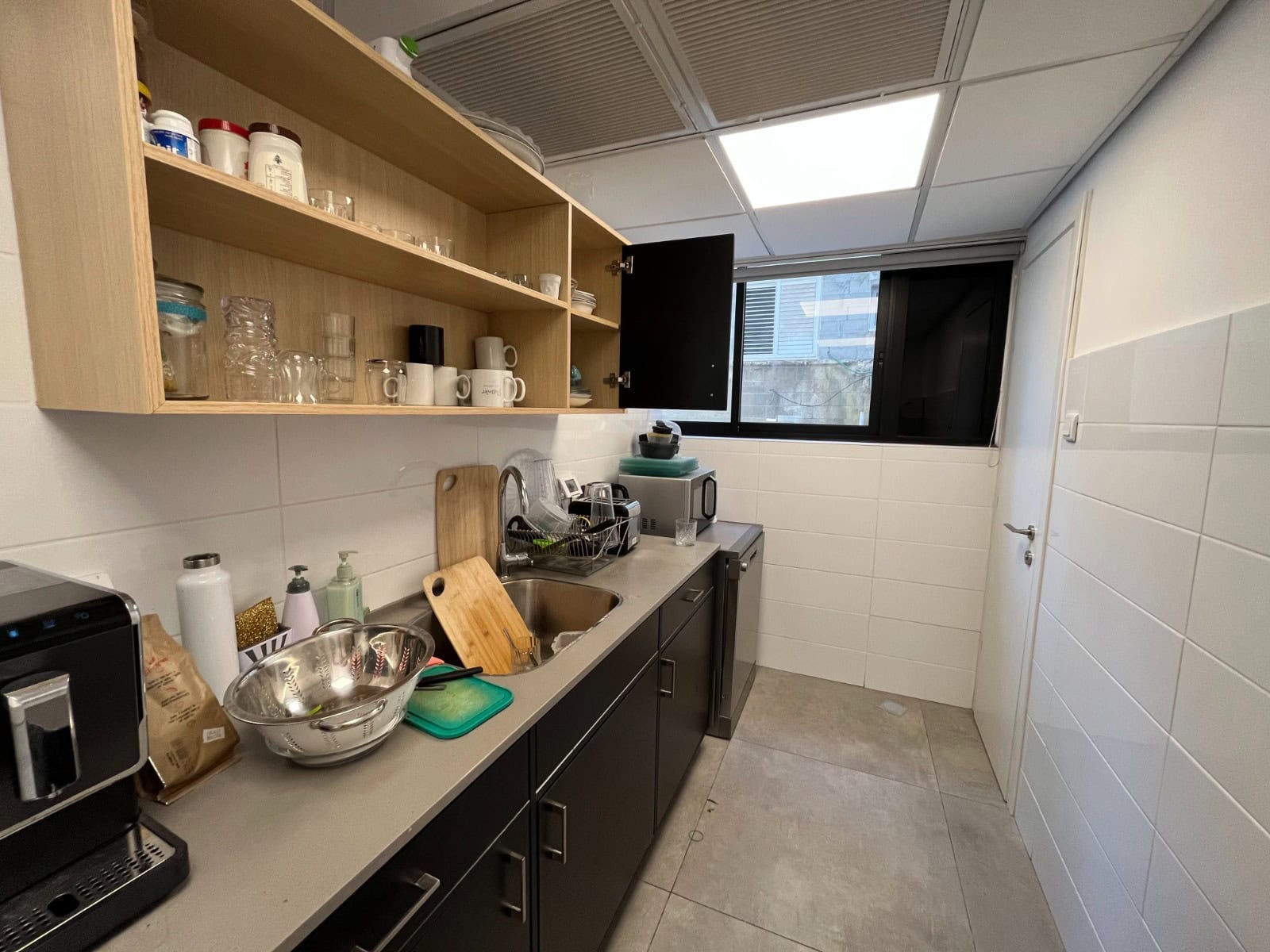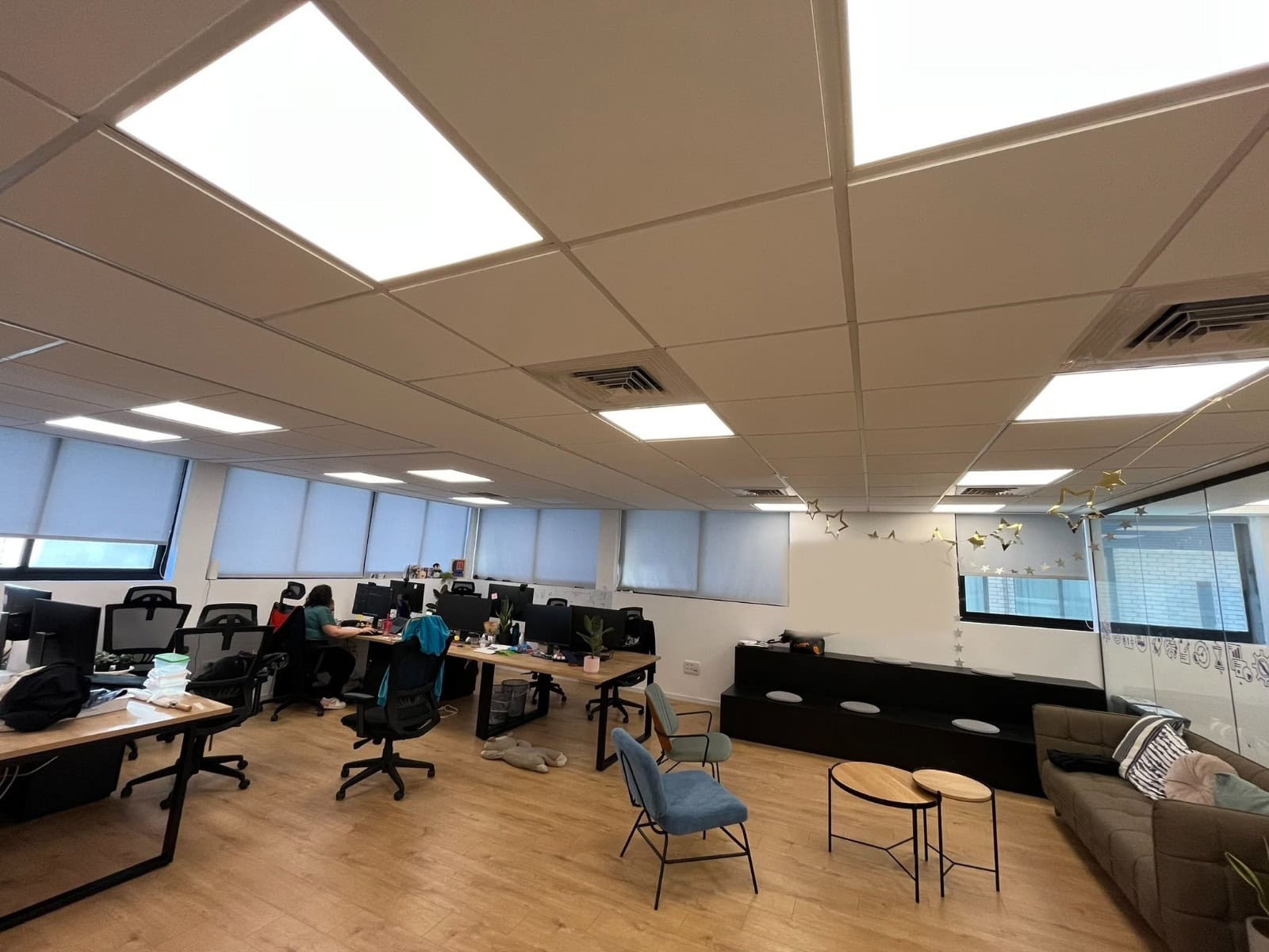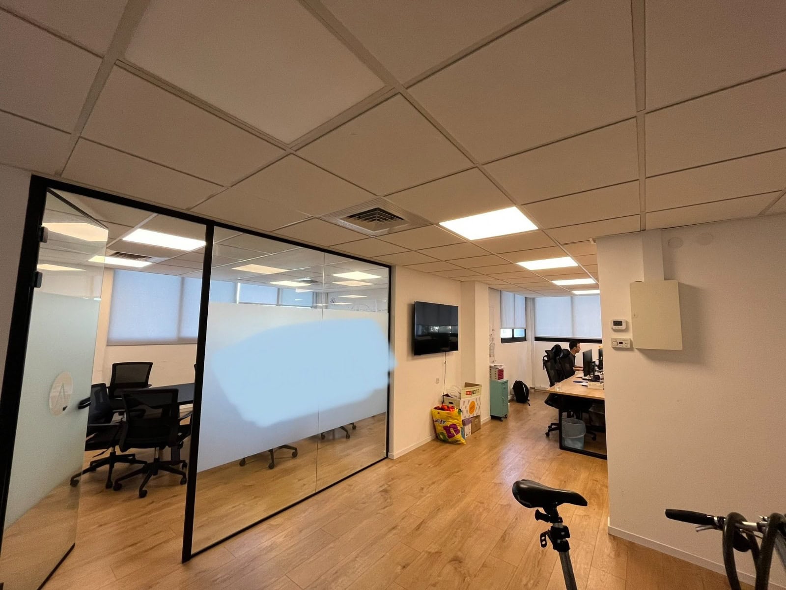 משרד שמחולק ל 2 אופן ספייסים של 12 עמדות כ״א , חדר ישיבות גדול ועוד 2 חדרים