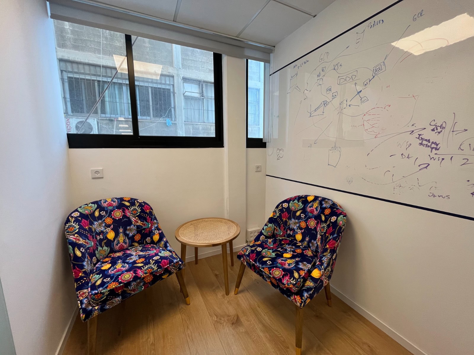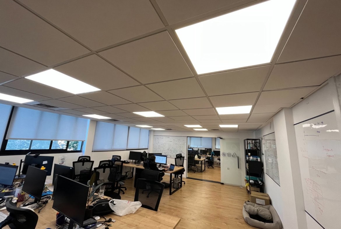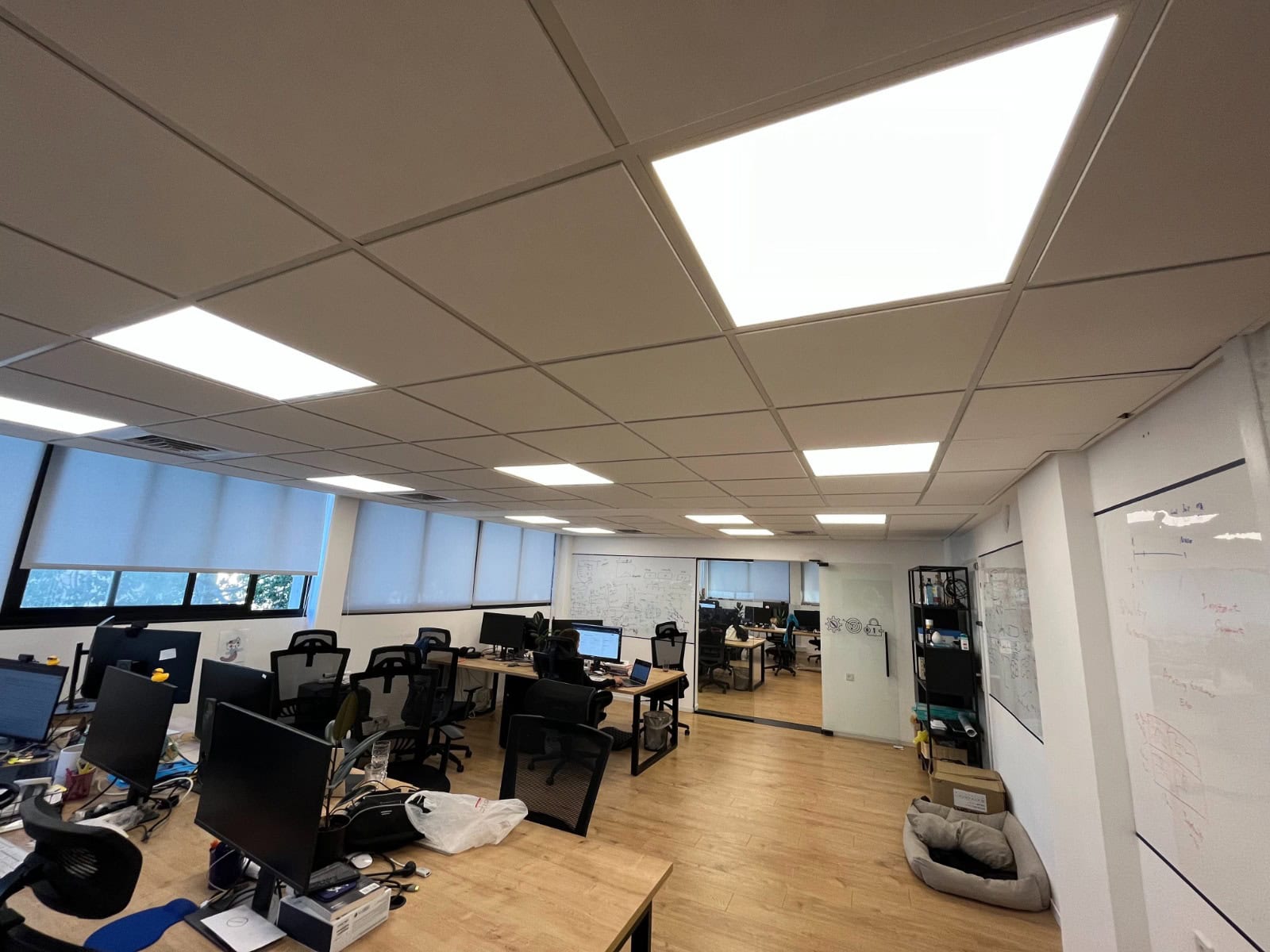 משרד שמחולק ל 2 אופן ספייסים של 12 עמדות כ״א , חדר ישיבות גדול ועוד 2 חדרים