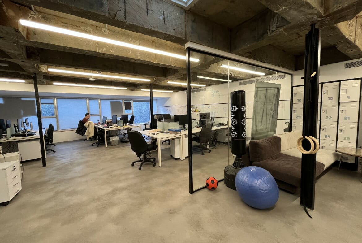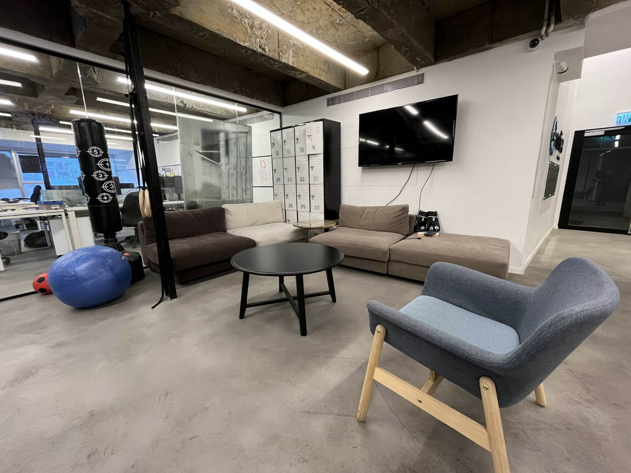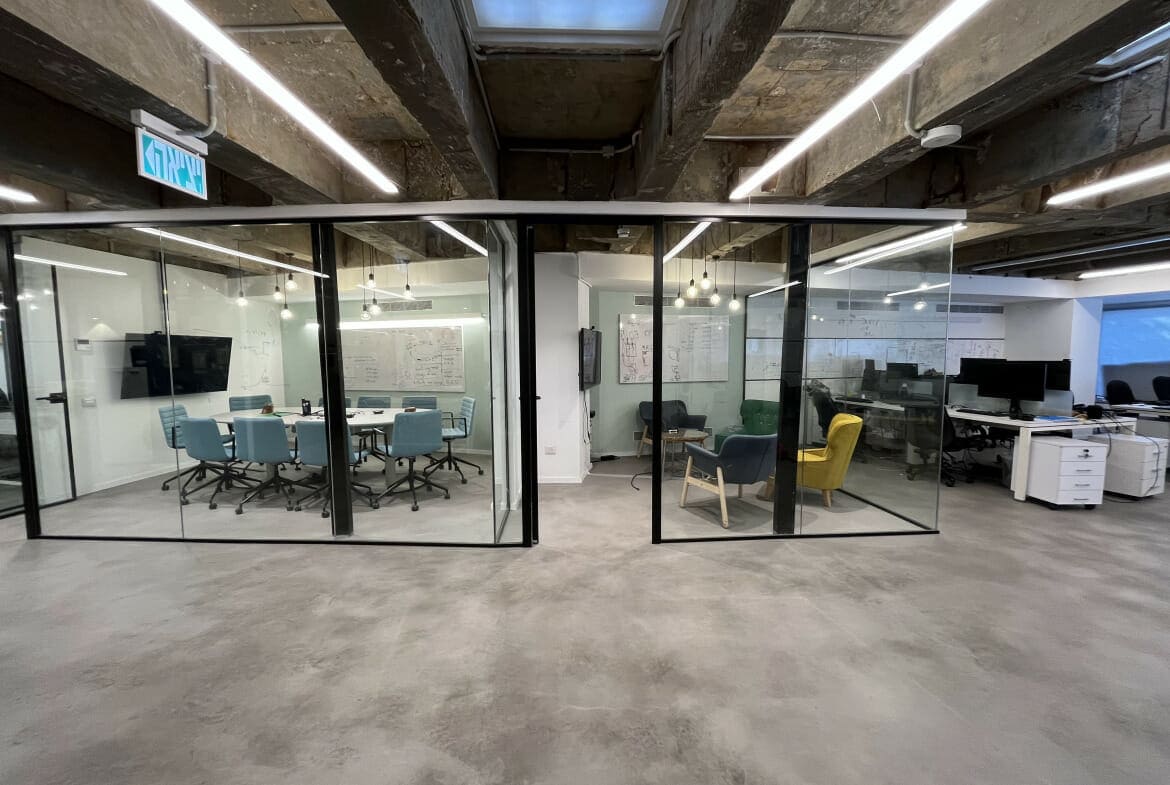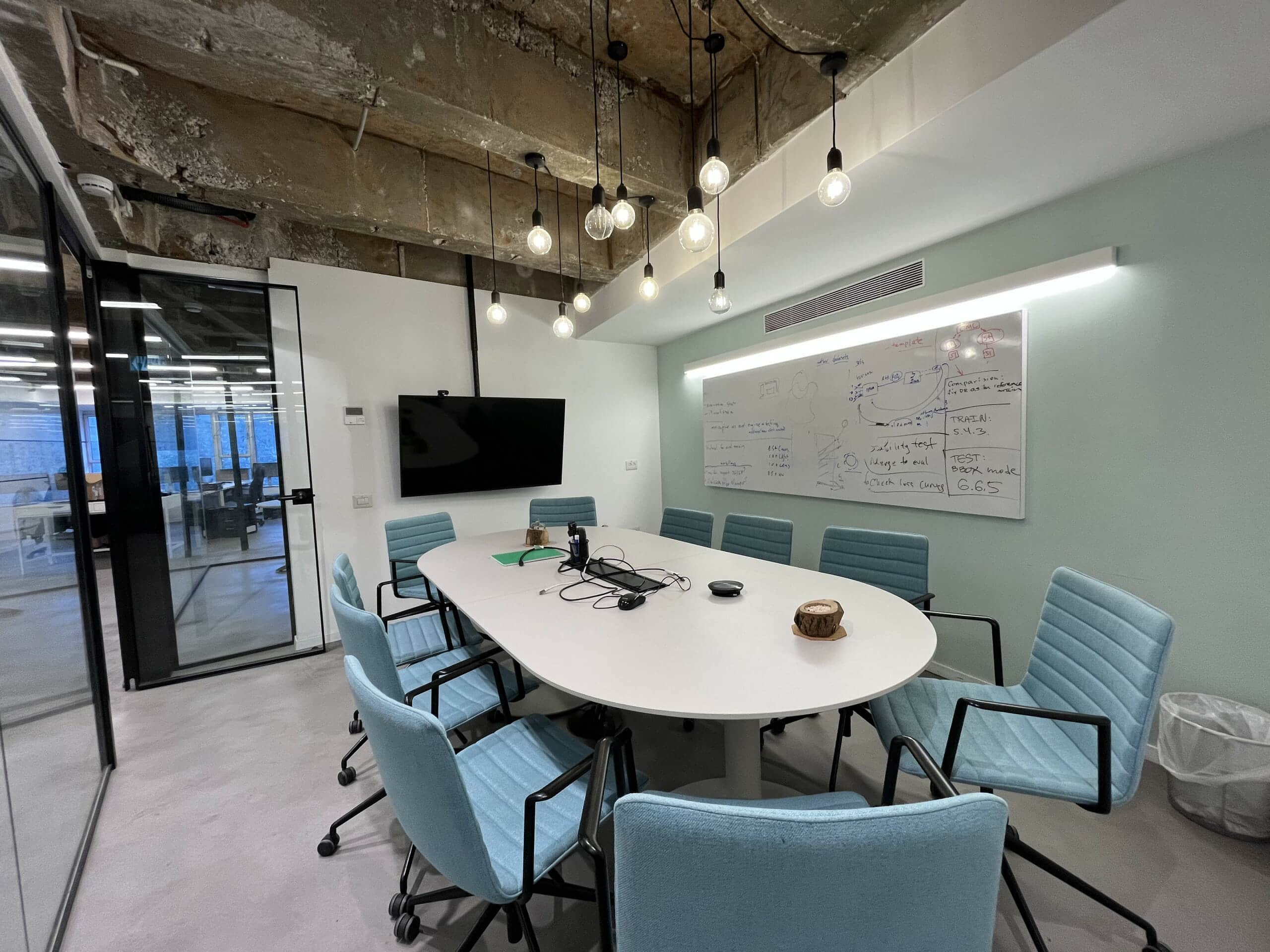 אופן ספייס שמחולק לשני חלקים סהכ 32 עמדות, 2 חדרי ישיבות,חדר מנכל, מטבח+פינת אוכל ולאונג׳