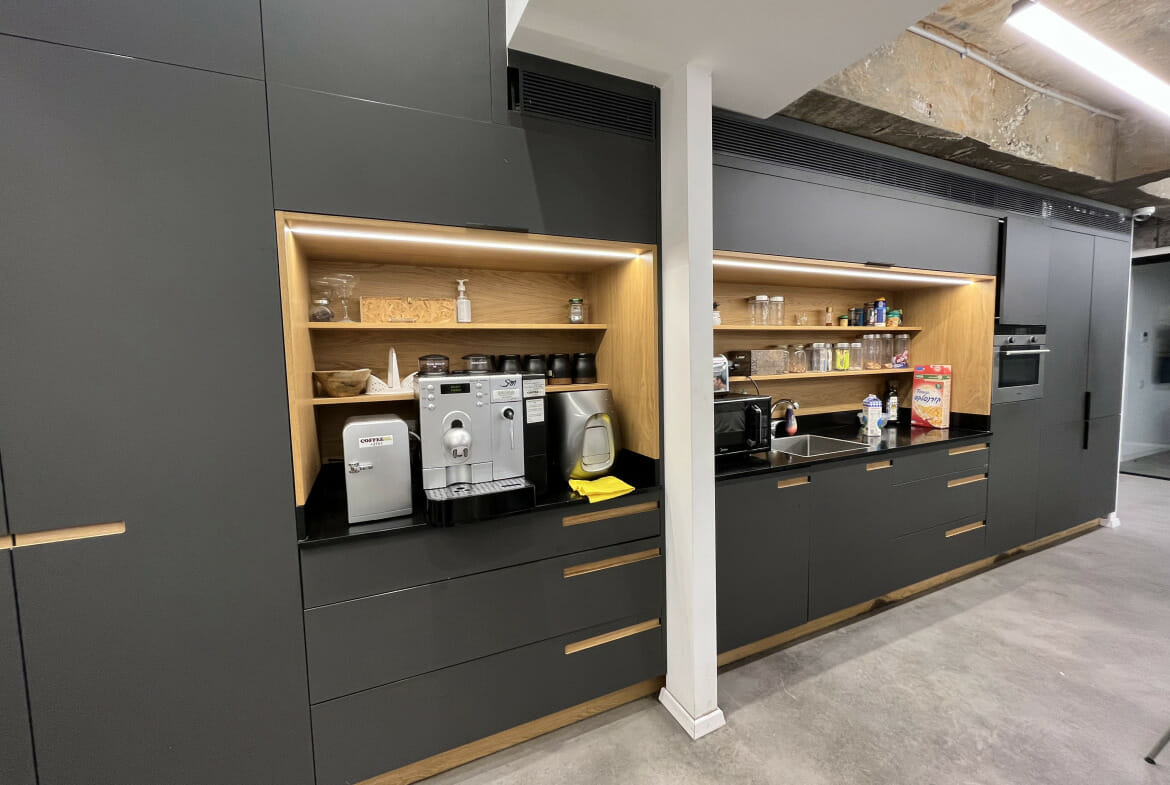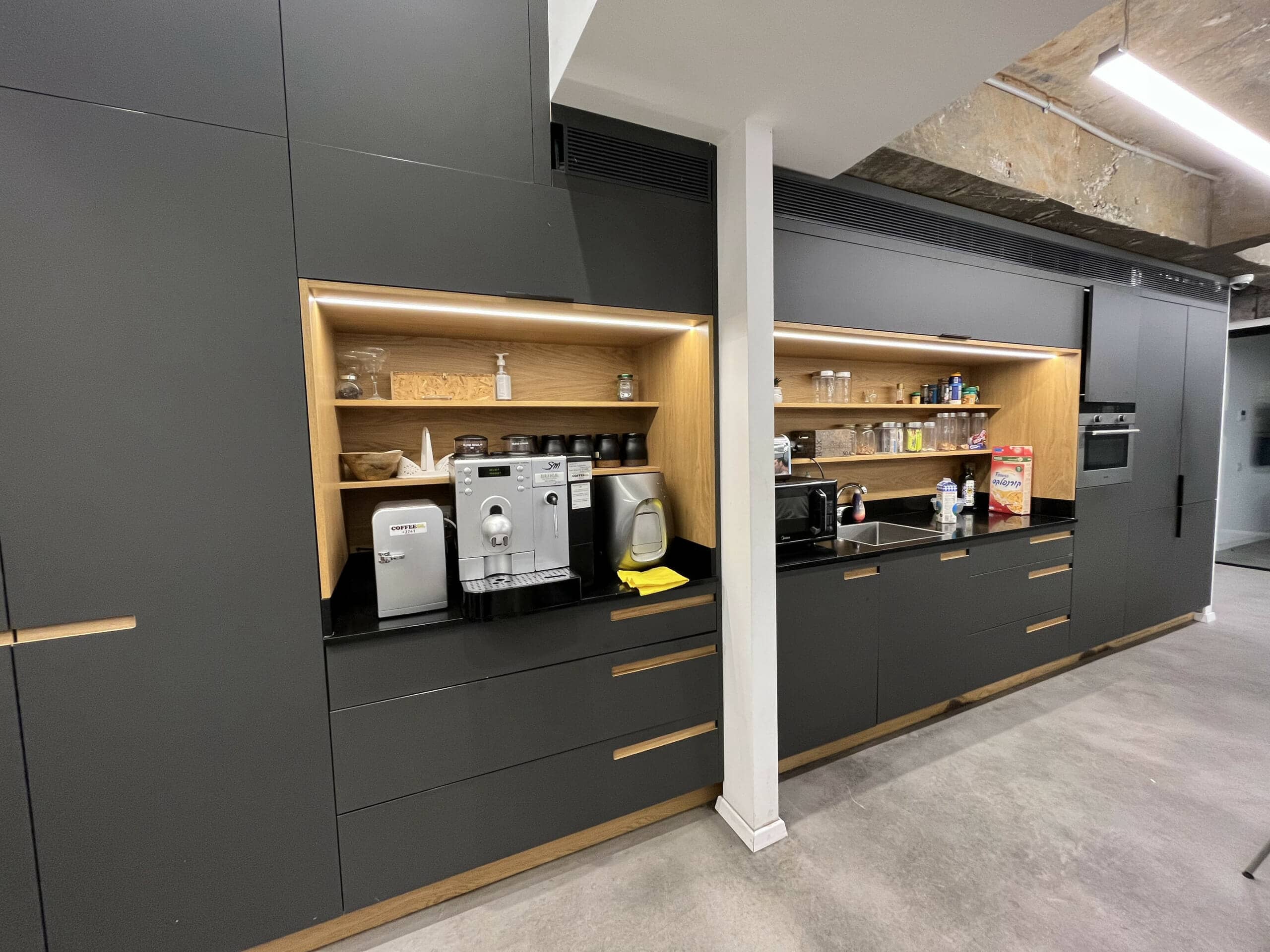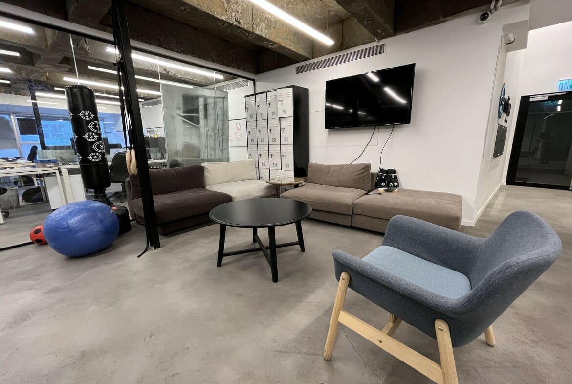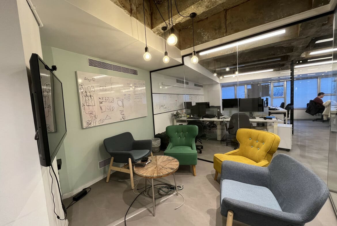 אופן ספייס שמחולק לשני חלקים סהכ 32 עמדות, 2 חדרי ישיבות,חדר מנכל, מטבח+פינת אוכל ולאונג׳