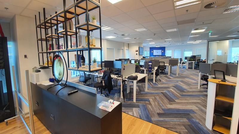 אודות חלוקת המשרד: חדר ישיבות ל-10 עובדים, 2 חדרי one on one, אופן ספייס ל-45 עובדים, 3 חדרים ל-2 עובדים כל אחד, מטבחון וחדר אוכל.