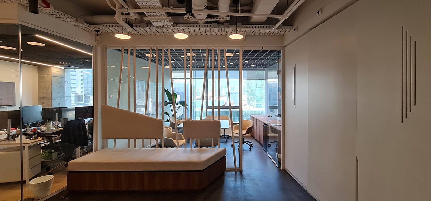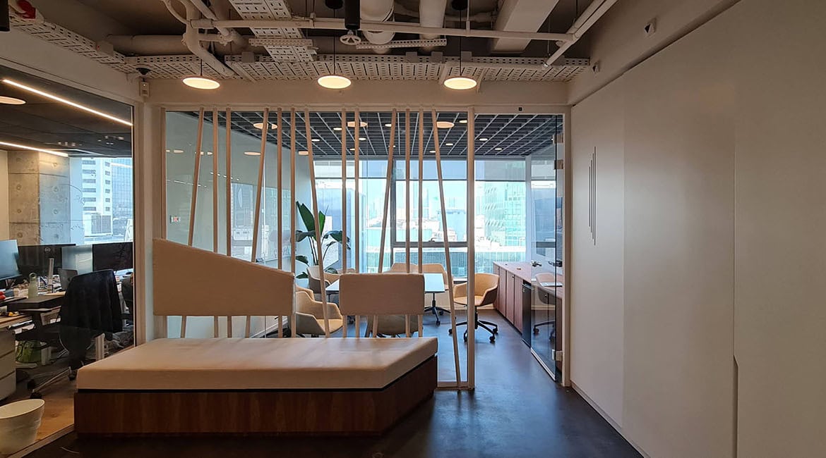 However, the most remarkable feature of the office is undoubtedly the stunning balcony, which offers a breathtaking view of the surrounding cityscape. It provides an ideal space for staff members to unwind and recharge while taking in the magnificent view.