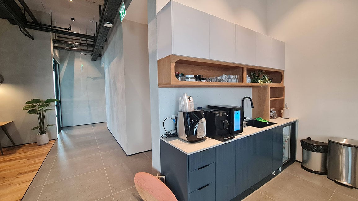 למשרד שני מטבחים, אחד גדול ואחד קטן, המשמשים כמרכזי אוכל משותפים לעובדים. המטבחים אלו אידיאליים להפסקת קפה מהירה או להכנת ארוחת צהריים טעימה לשתף עם עמיתים. את יכולים להנות גם מהמרפסת שמציעה נוף מהמם של העיר והיא מקום מצוין להירגע במהלך ההפסקות שלכם.