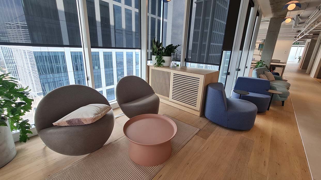 המשרד מחולק ל 5 מרחבים שונים, כל אחד מעוצב בצורה ייחודית לשרת מחלקות שונות בחברה. בין אם אתה זקוק לחדר ישיבות גדול או לחדר יחידי יותר לשיחות אישיות, המשרד הזה מספק הכול. ולמי שמחפש אווירה נינוחה יותר, ישנן מספר לאונג’ים פנימיים ליהנות מהם.