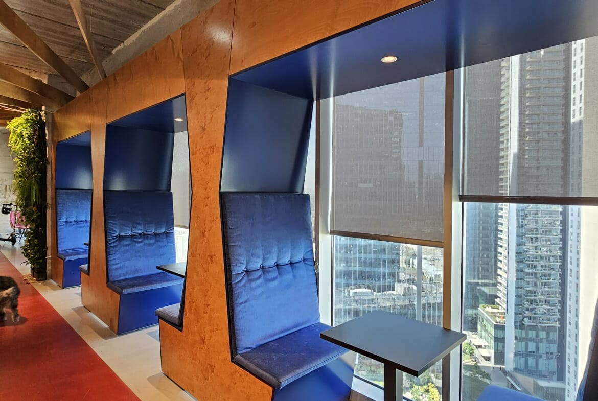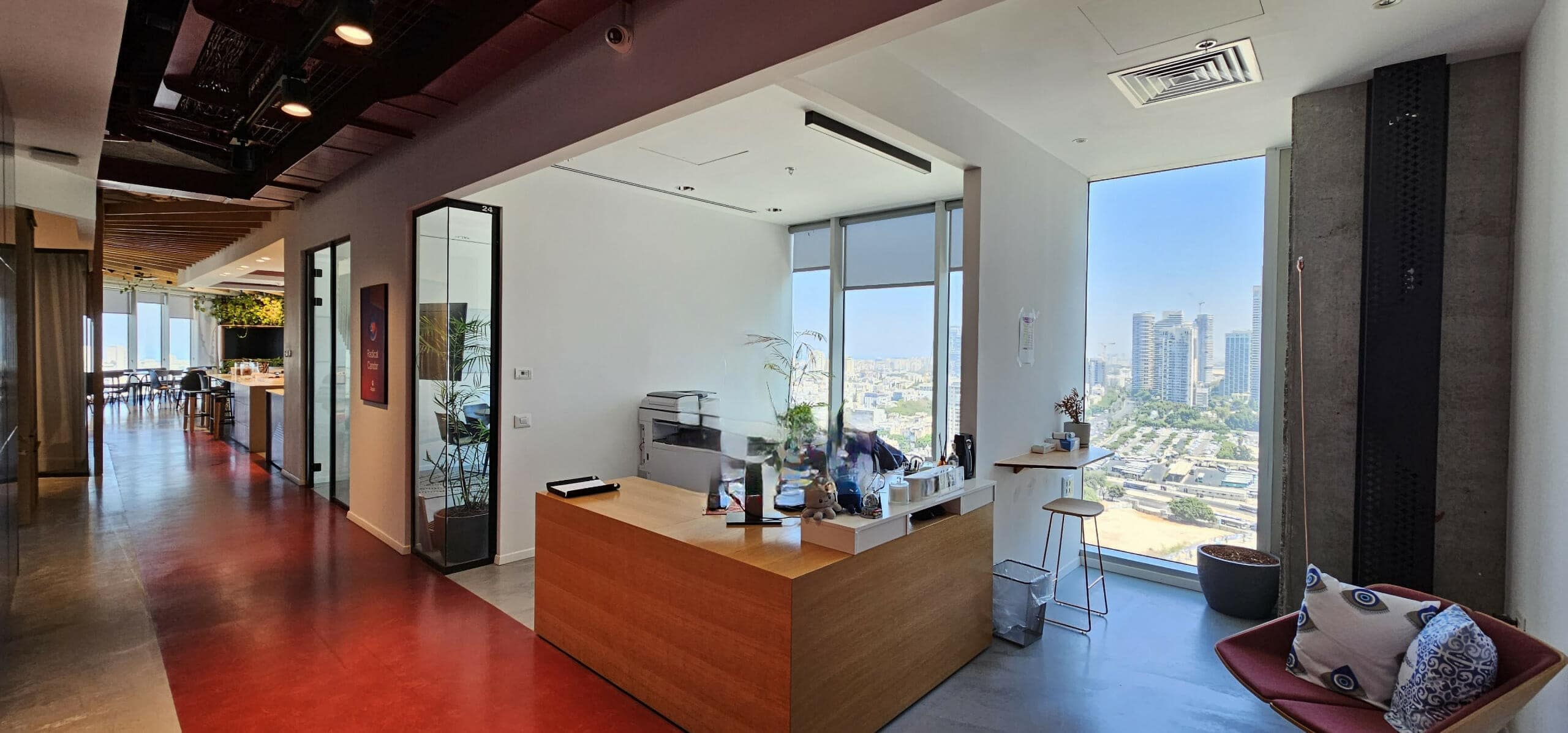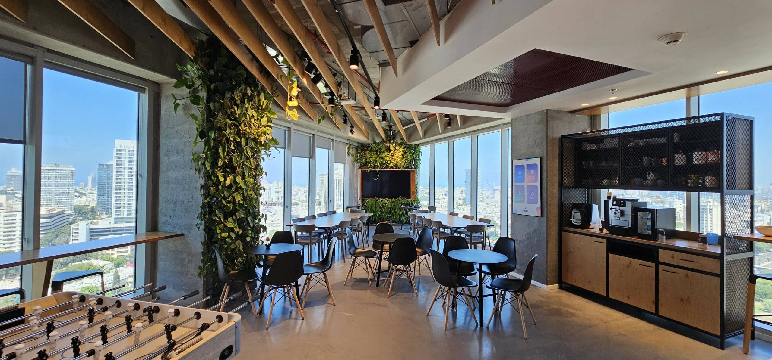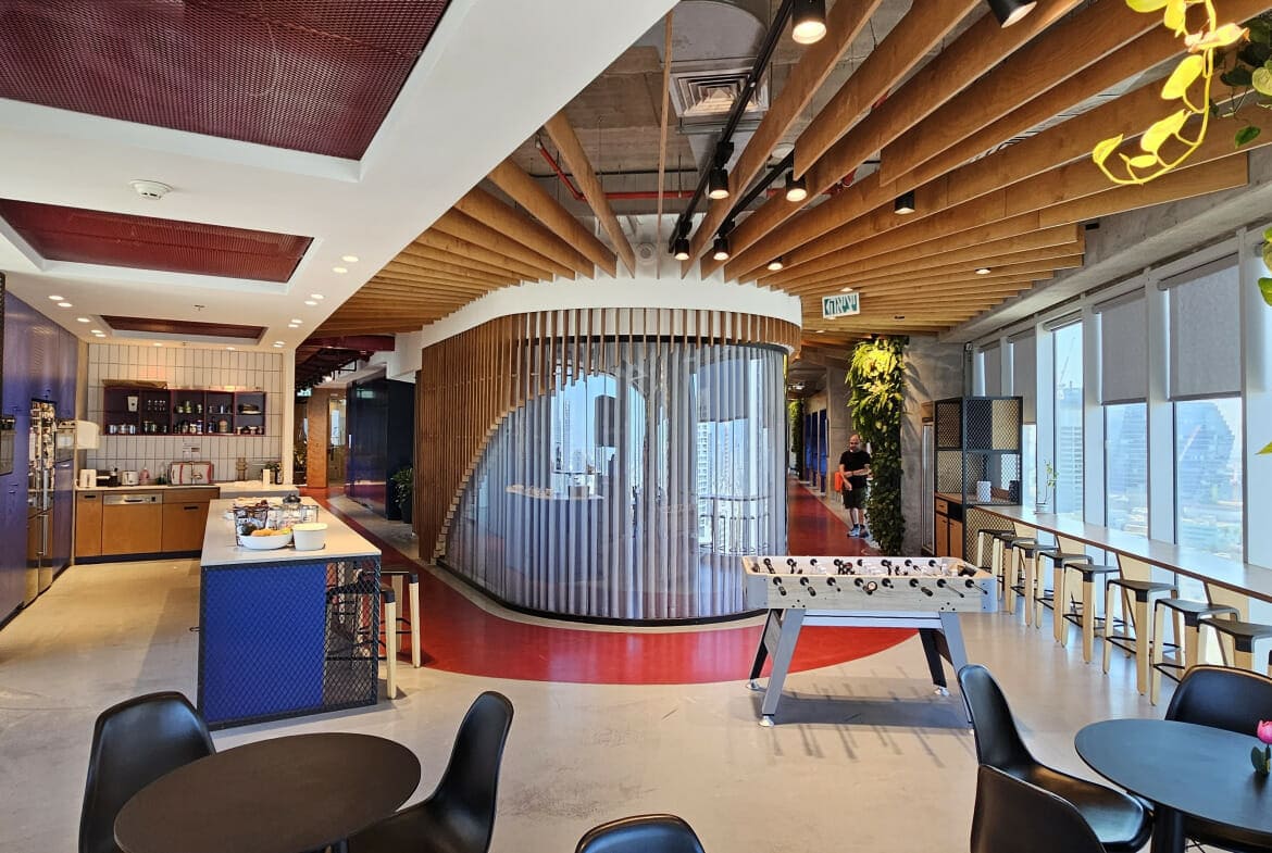 המשרד מחולק לאזור קבלה, מטבח גדול עם שולחנות אוכל לכל החברה ומטבח קטן במחלק השני של המשרד, 14 חדרי צוות, חדר דיונים גדול ל 20 עובדים, שני חדרי שיבות גדולים, שני חדרי ישיבות קטנים, 4 חדרי עבודה, 6 אזורי לאונג’ קטנים, 8 תאי טלפון.
