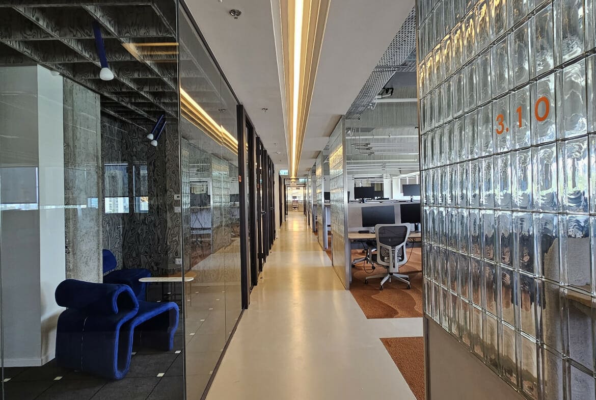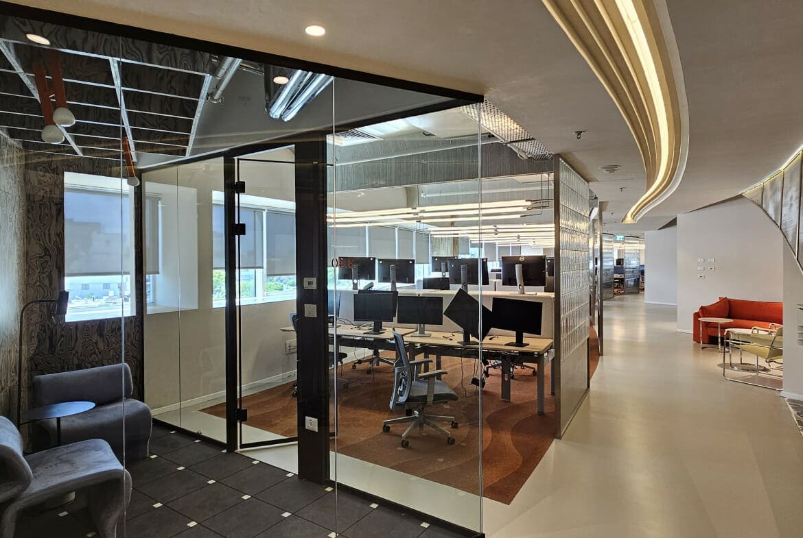 משרד להשכרה, 1800 מטר באזור יגאל אלון. המשרד מחולק למטבח גדול ומאובזר, חדרי ישיבות, חדרי דיונים, חדרי ישיבות קטנים, אופן ספייסים, חדרי צוות, חדרי אחד על אחד. חדר כושר בבניין.