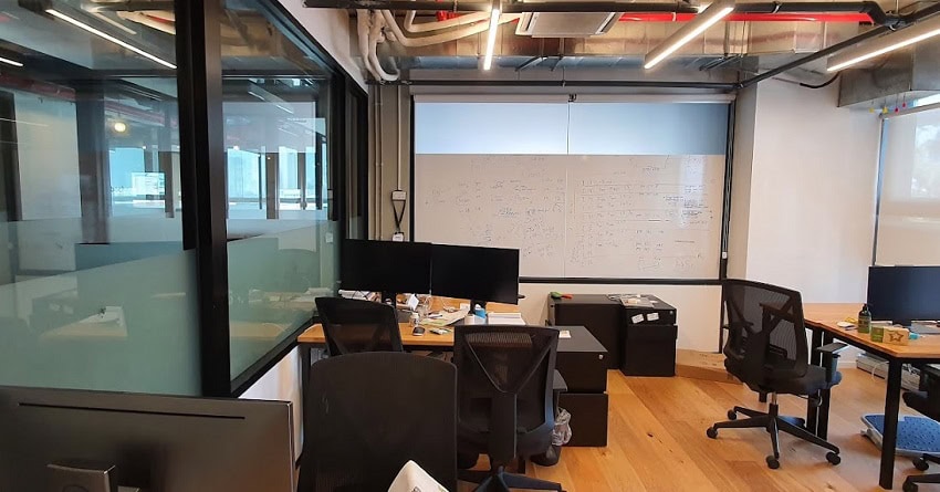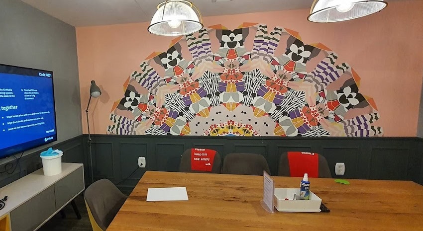 משרד WEWORK להשכרה לפי עמדה במתחם שרונה רח’ קלמן מגן. משרד יפה- צבעוני, מאובזר ומרווח.
